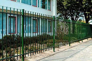Der Frontgitterzaun eignet sich speziell für repräsentative Objekte mit hohem Sicherheitsstatus. Die viereckigen Gitterstäbe dieses Zaunsystems vermitteln Stabilität und moderne Eleganz und bieten somit verstärkten Schutz gegen Vandalismus.